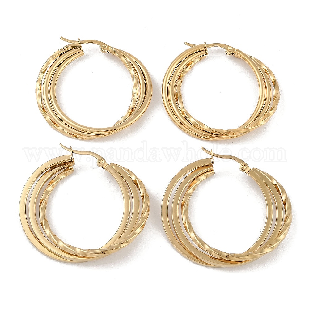 • Золотой Вакуумное покрытие pvd 201 серьги-кольца из нержавеющей стали, с 304 штифта из нержавеющей стали, золотые, 35x6 мм