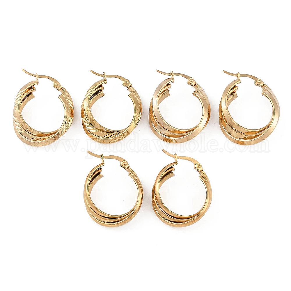 • Золотой Вакуумное покрытие pvd 201 серьги-кольца из нержавеющей стали, с 304 штифта из нержавеющей стали, золотые, 29x8.5 мм
