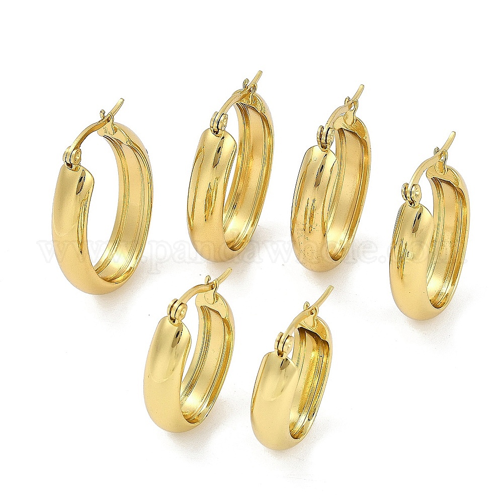 • Золотой Серьги-кольца из нержавеющей стали с вакуумным покрытием PVD и платиной для женщин, с 201 штифтов из нержавеющей стали, овальные, золотые, 304 мм