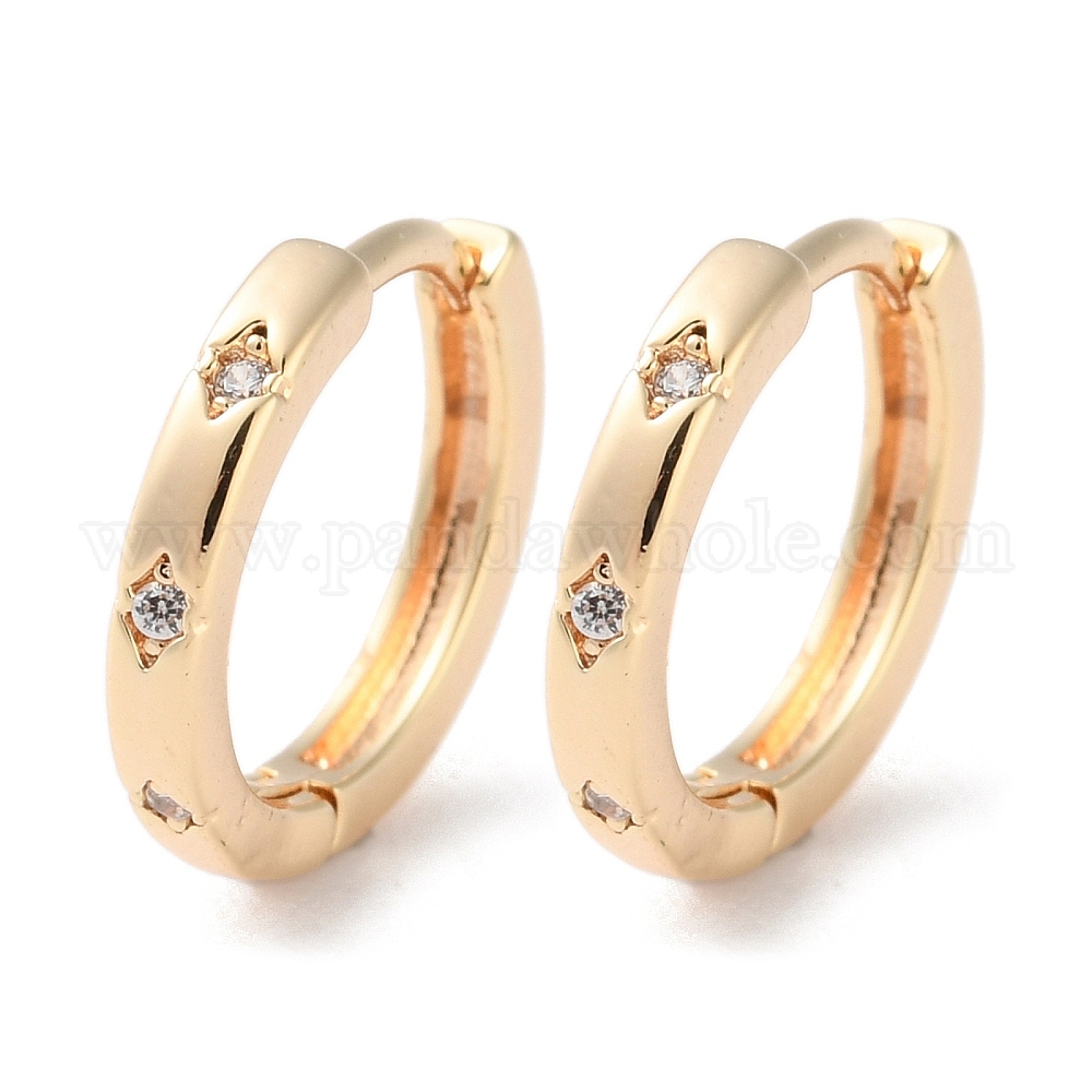 Латунные серьги-кольца с прозрачным кубическим цирконием