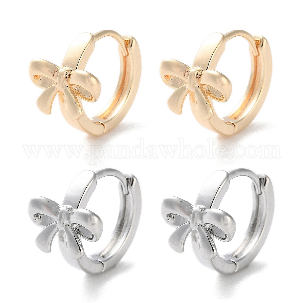 • Платинированный Латунные серьги-кольца с бантом, Реальная платина, 13.5x10.5x15.5 мм