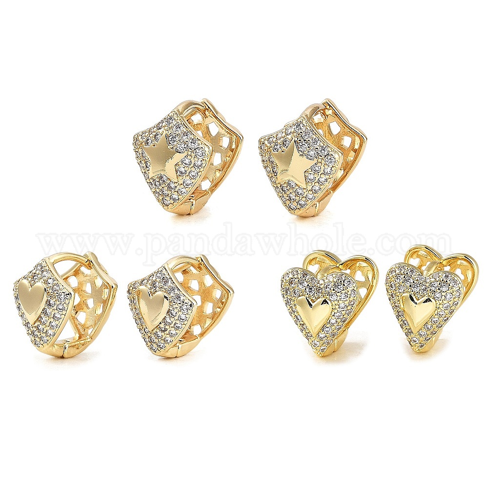 Женские серьги-кольца из латуни с микропаве и прозрачными циркониями, золотые