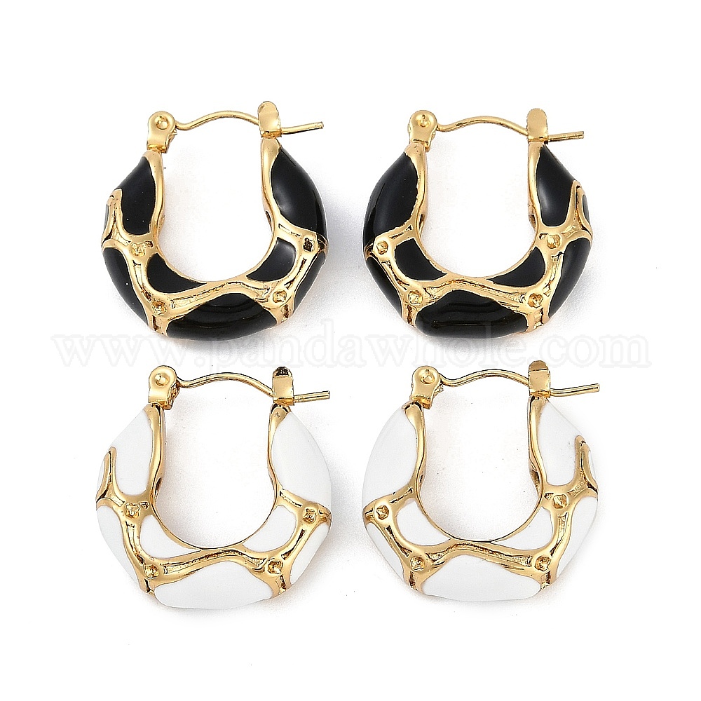 Ионное покрытие (ip) 304 текстурированные серьги-кольца из нержавеющей стали, с эмалью, реальный 18 k позолоченный