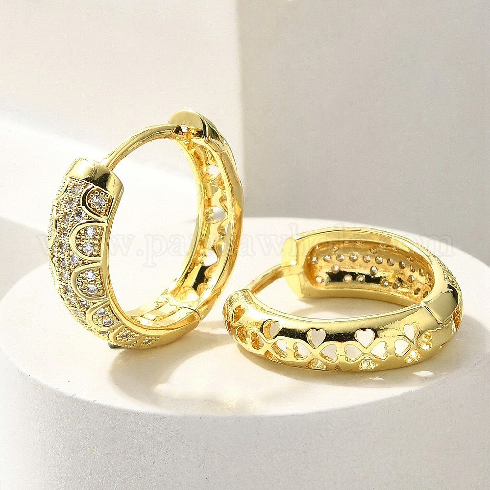 Серьги-кольца из латуни с прозрачным кубическим цирконием, сердце