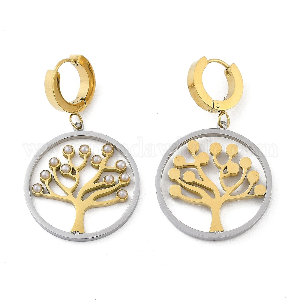 304 серьги-кольца из нержавеющей стали с имитацией жемчуга, дерево, ионное покрытие (ip)