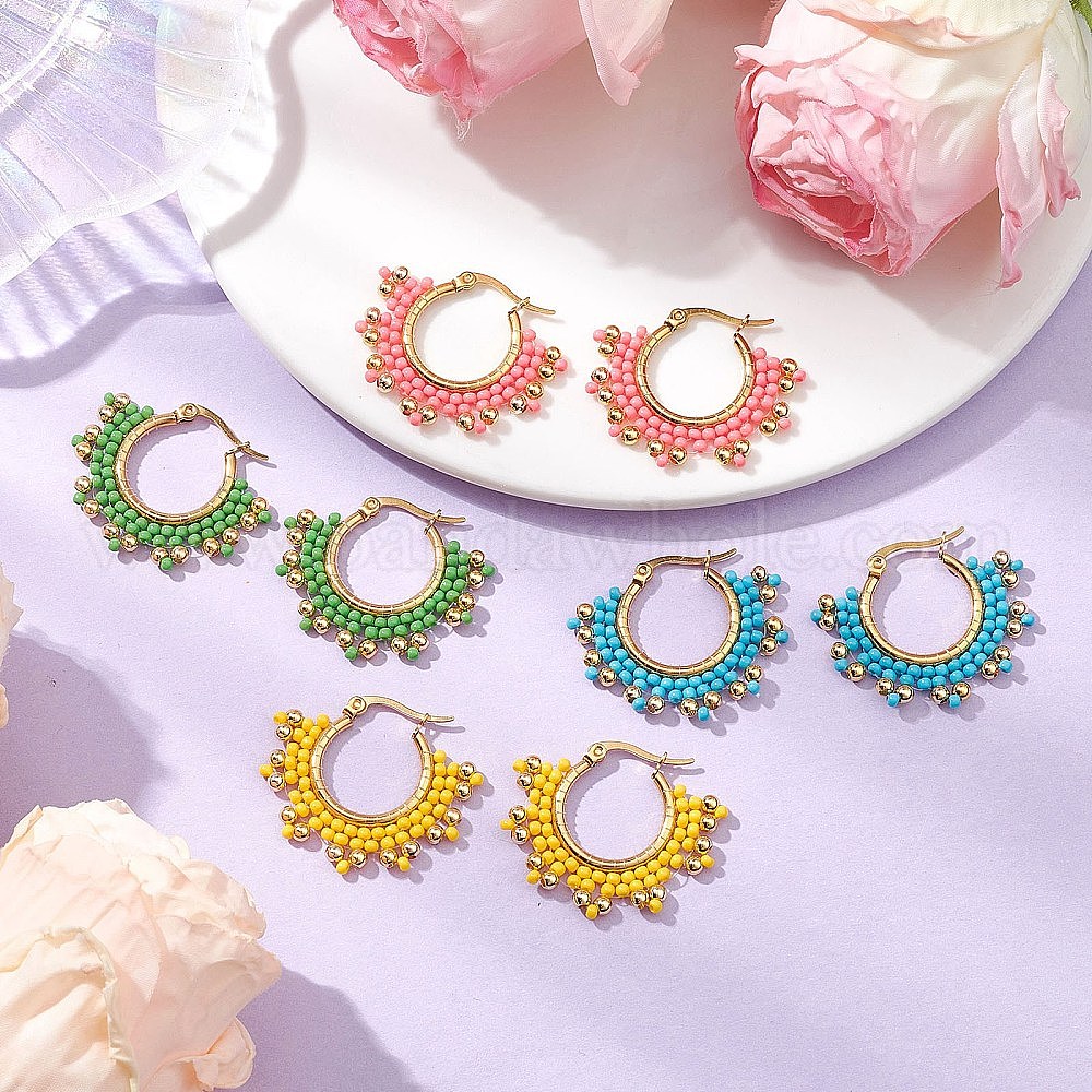 304 серьги-кольца из стеклянных бусин из нержавеющей стали, цветок