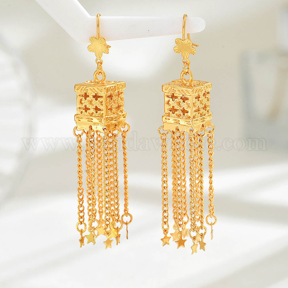• Золотой Цепочка кисточка звезда мода сплав серьги-кольца, золотые, 60x15 мм