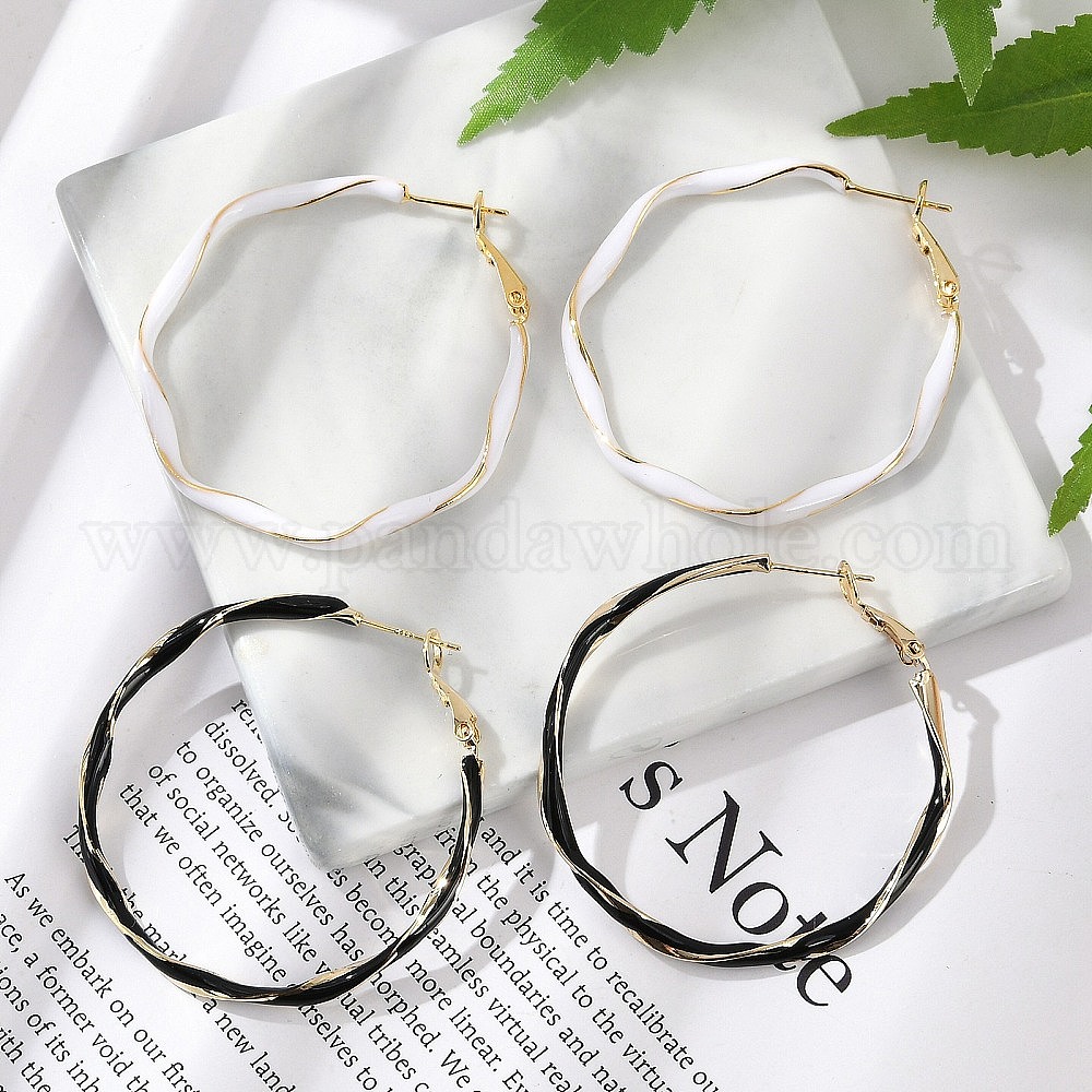 • Белый Серьги-кольца с эмалью из латуни, с 925 штырями стерлингового серебра, реальный 18 k позолоченный, белые, 48.5x44 мм