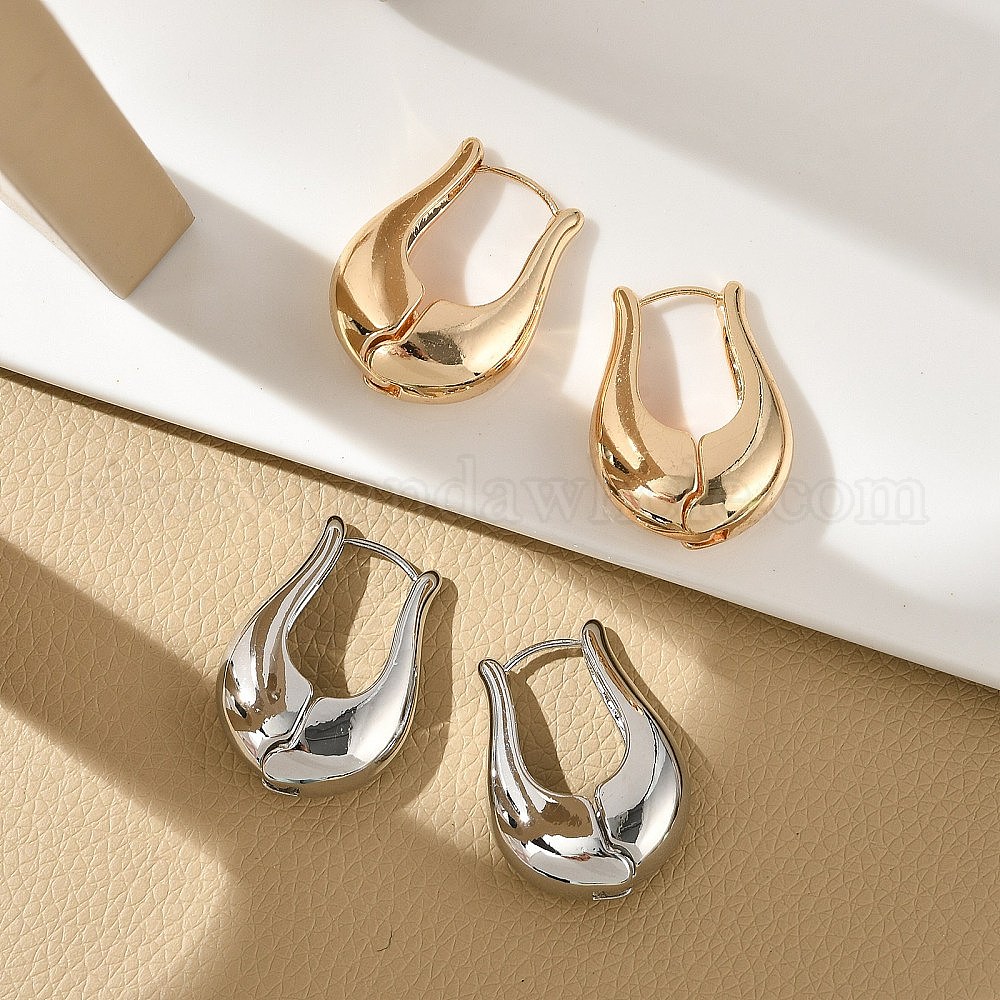 Латунь обруч серьги для женщин, цветок