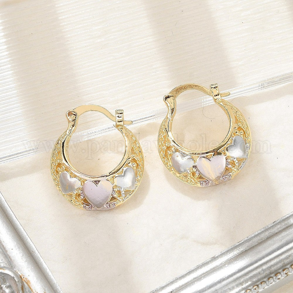 • Настоящее золото 18K Двухцветные серьги-кольца из латуни, сердце, реальный 18 k позолоченный, 20x7.5 мм, штифты : 0.8 мм