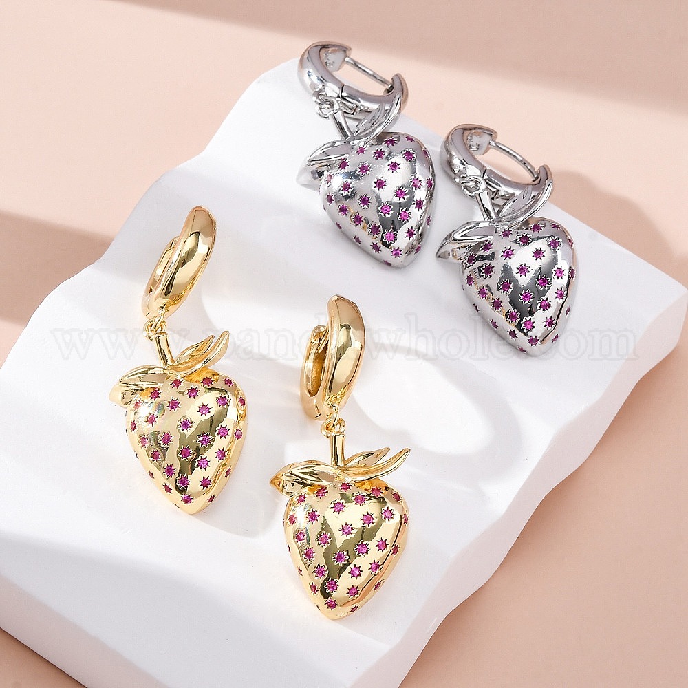 Латунные микро проложить серьги обруча кубического циркония, без свинца и без кадмия, долговечный, стойки покрытие, клубника