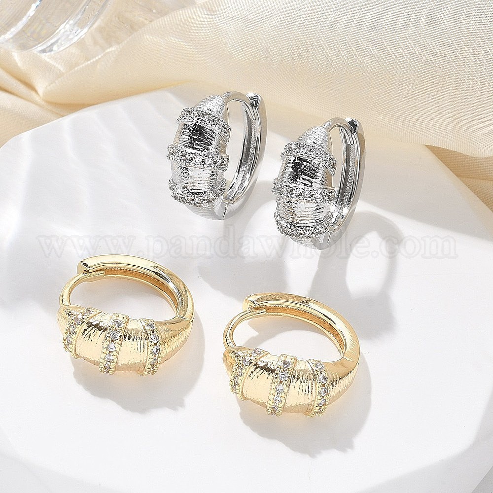 Серьги-кольца из латуни с прозрачным кубическим цирконием, слеза