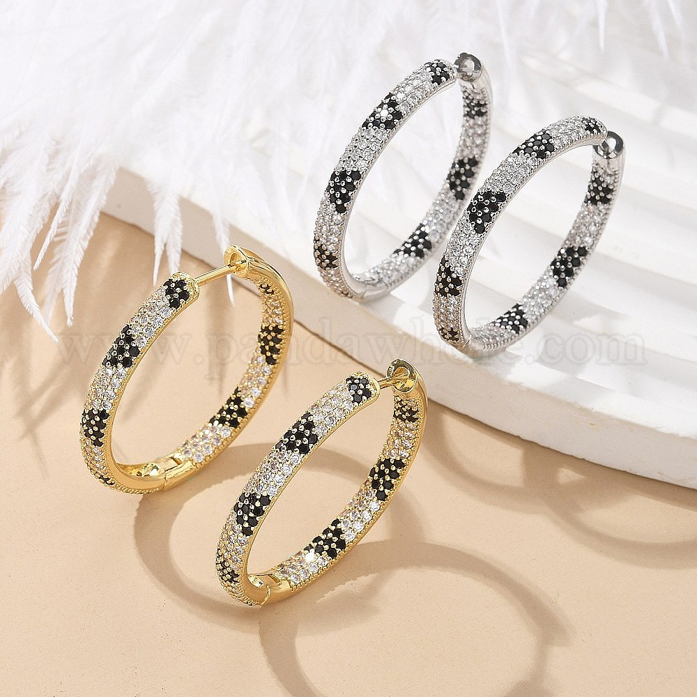 Латунные микро проложить серьги обруча кубического циркония, стойки покрытие, долговечный, без свинца и без кадмия (031223)