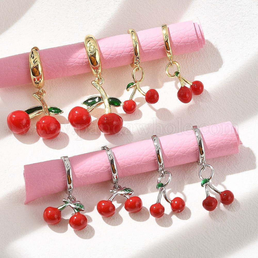 Серьги-кольца из вишневой латуни с эмалью, стойки покрытие, долговечный, без свинца и без кадмия
