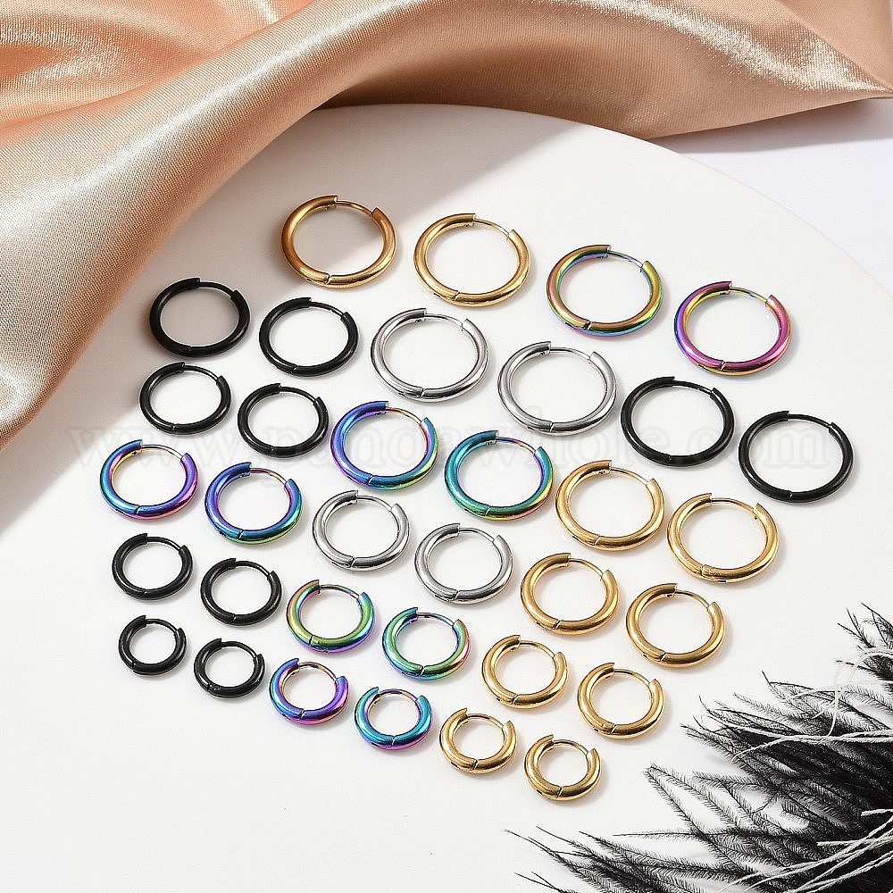 • Rainbow Color 202 обруч серьги из нержавеющей стали замке, гипоаллергенные серьги, с 316 хирургическим стержнем из нержавеющей стали, ионное покрытие (ip), Радуга цветов, 20x2.5 мм