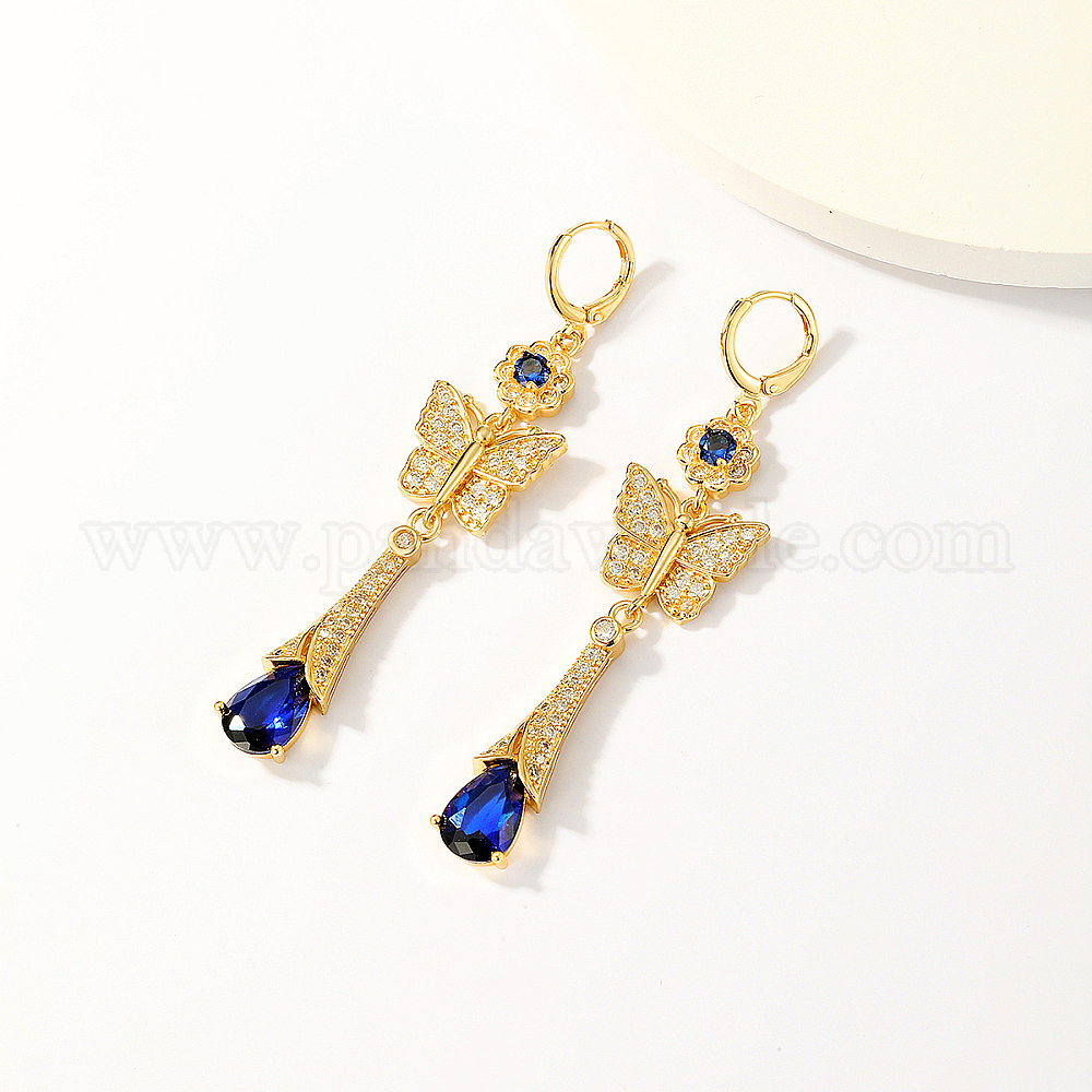 Элегантные серьги-кольца с кисточками из латуни с кубическим цирконием в форме бабочки