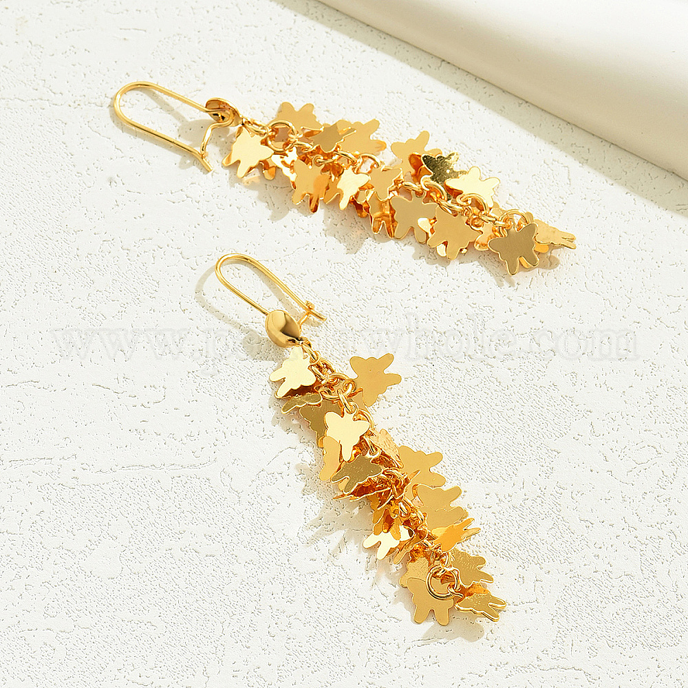 Элегантные латунные серьги-кольца с кисточками в виде бабочек