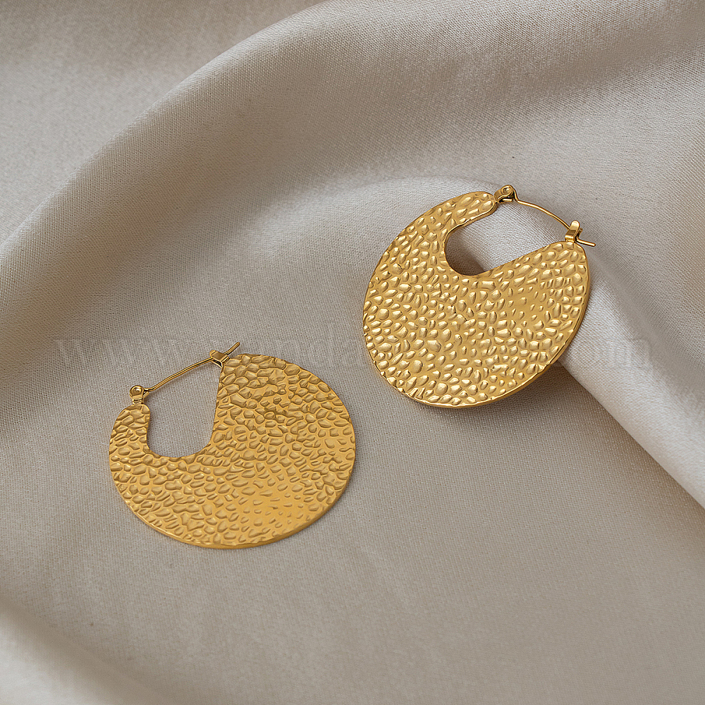 Стильные 304 плоские круглые серьги-кольца из текстурированной нержавеющей стали