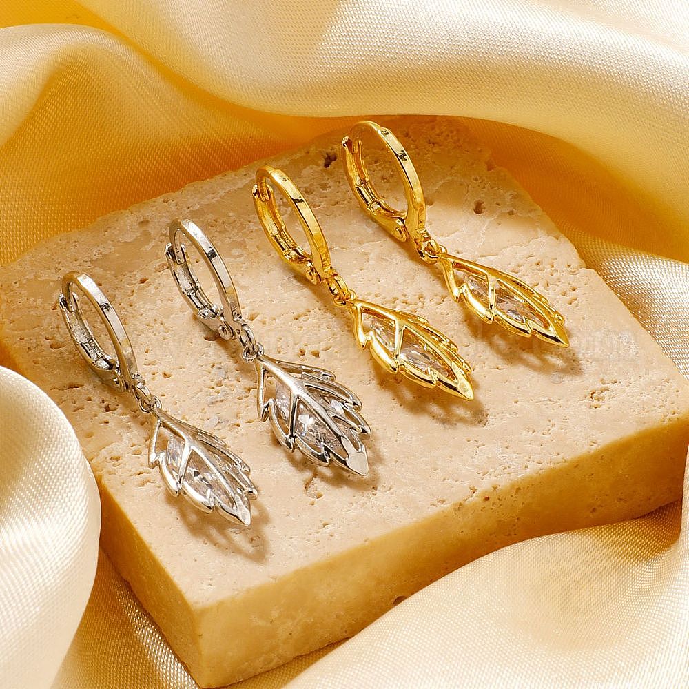 Шикарные мини-серьги-кольца из латуни в форме листа, с четким кубического циркония