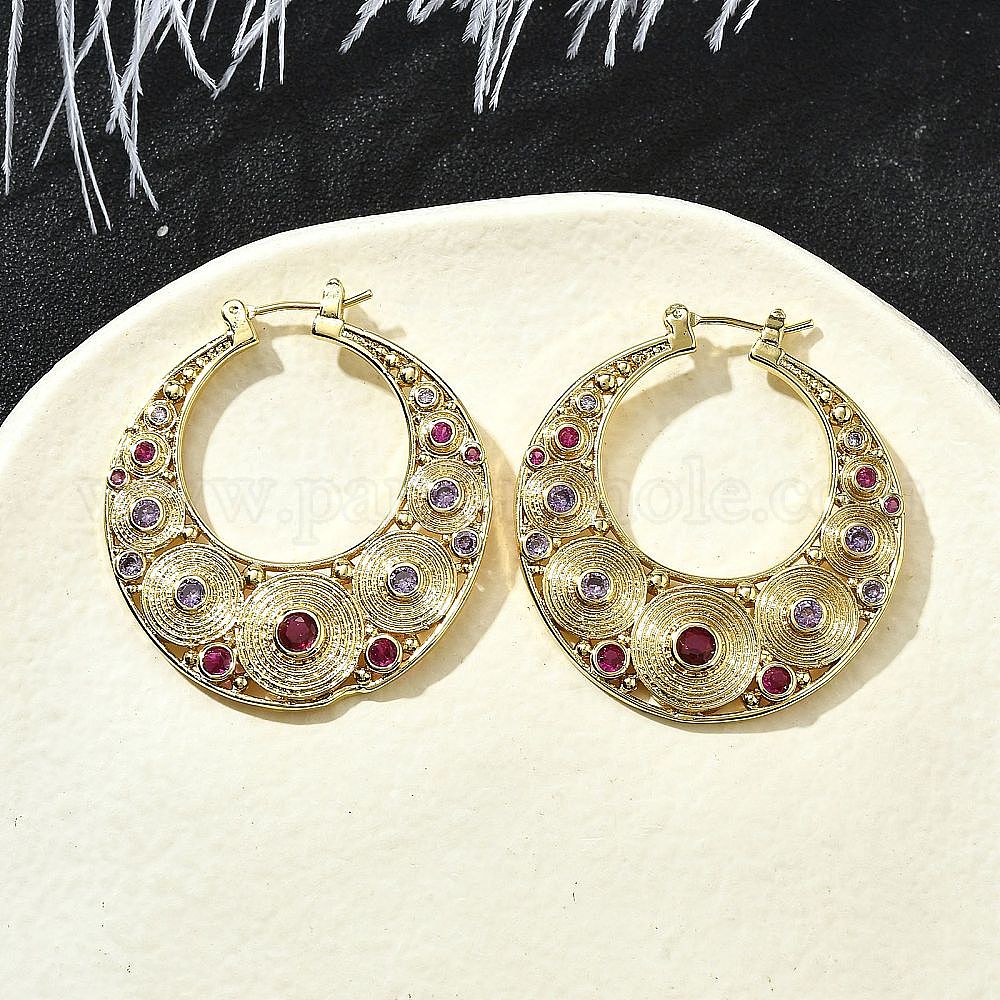 Латунные серьги обруча, с кубического циркония, без кадмия и без свинца, долговечный, стойки покрытие, плоско-круглые