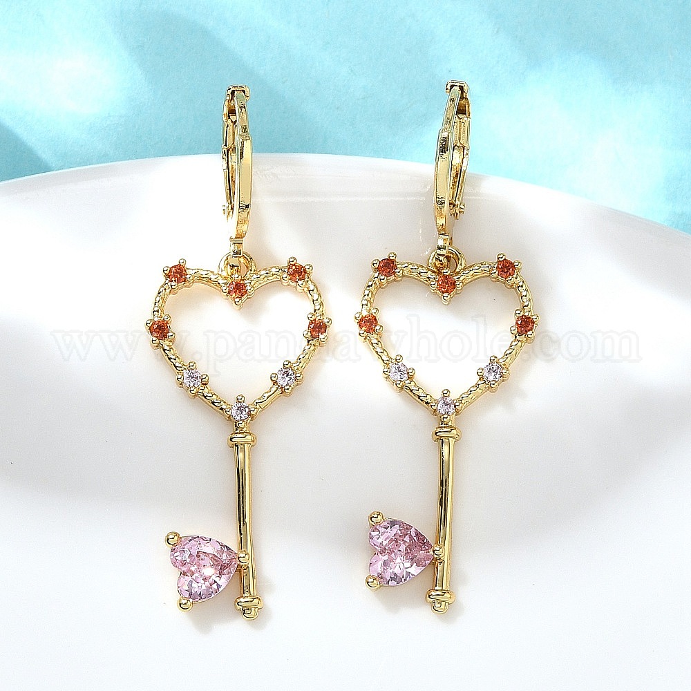 Серьги-кольца из латуни в форме сердца, с кубического циркония, без кадмия и без свинца, долговечный, стойки покрытие