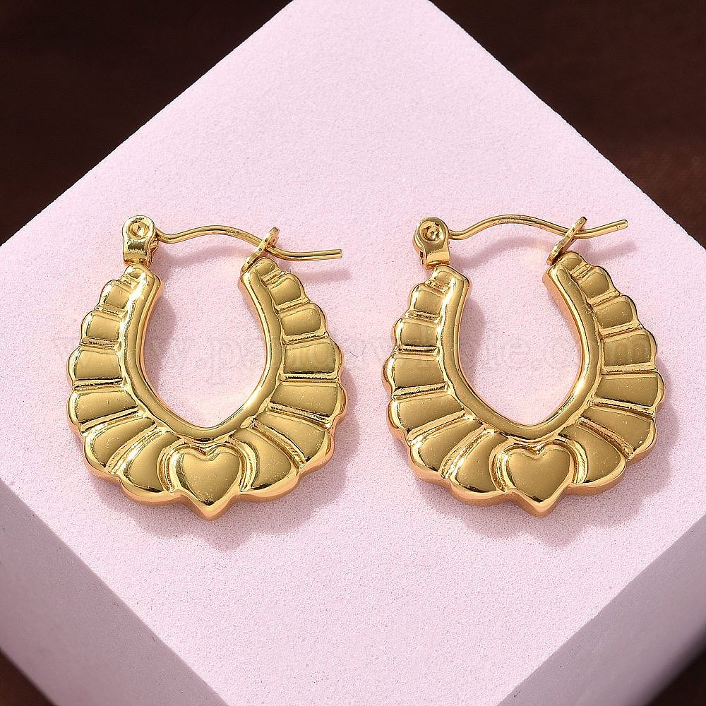 • Настоящее золото 18K 304 серьги из нержавеющей стали для женщин, ионное покрытие (ip), овальные, реальный 18 k позолоченный, 23x20.5x3 мм
