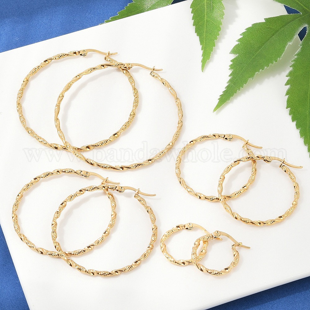 • Золотой Серьги из 201 нержавеющей стали, с 304 штифтов из нержавеющей стали, вакуумное покрытие pvd, плоско-круглые, золотые, 55x2.5 мм