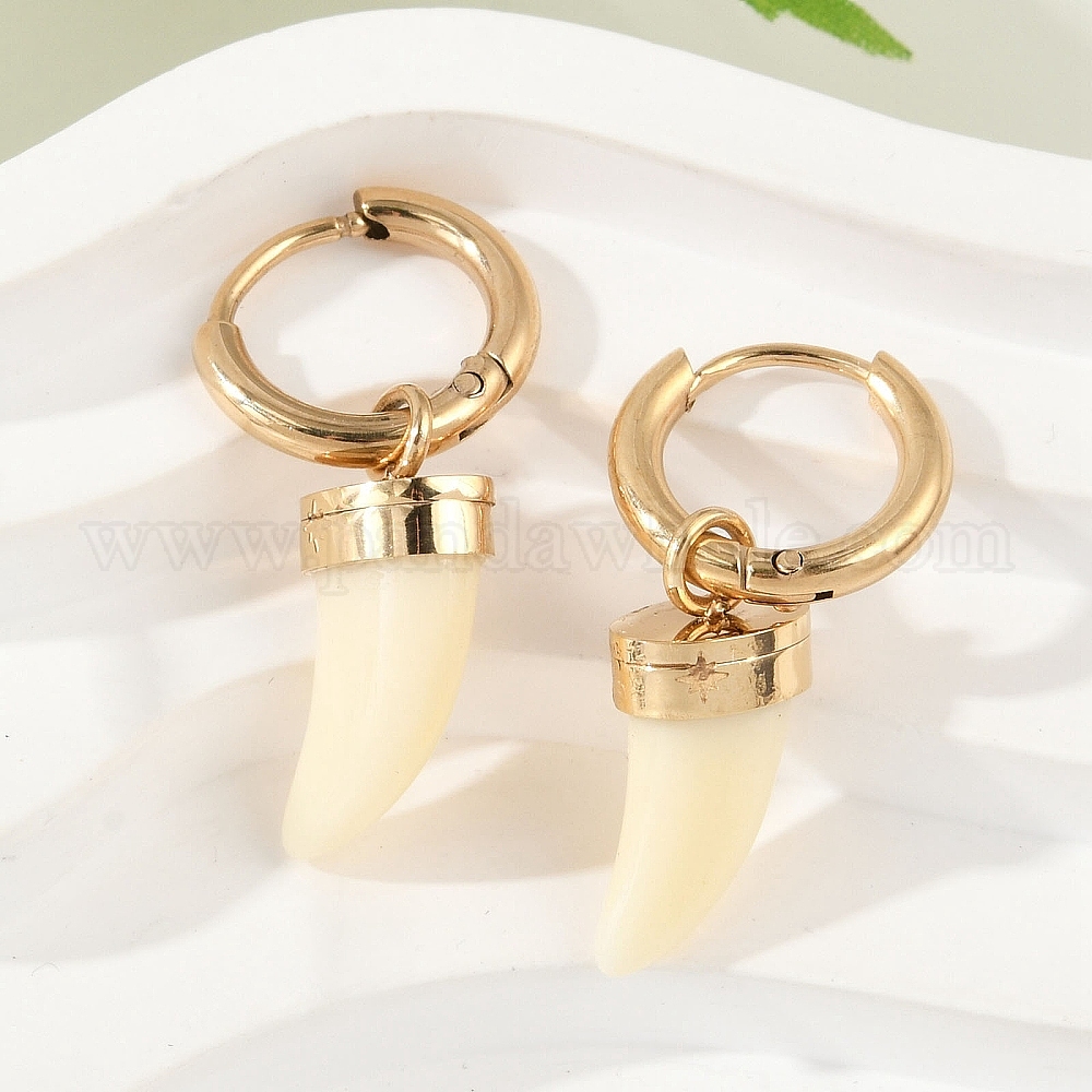 304 серьги-кольца из пластика и нержавеющей стали с имитацией ракушек, ионное покрытие (ip), рог