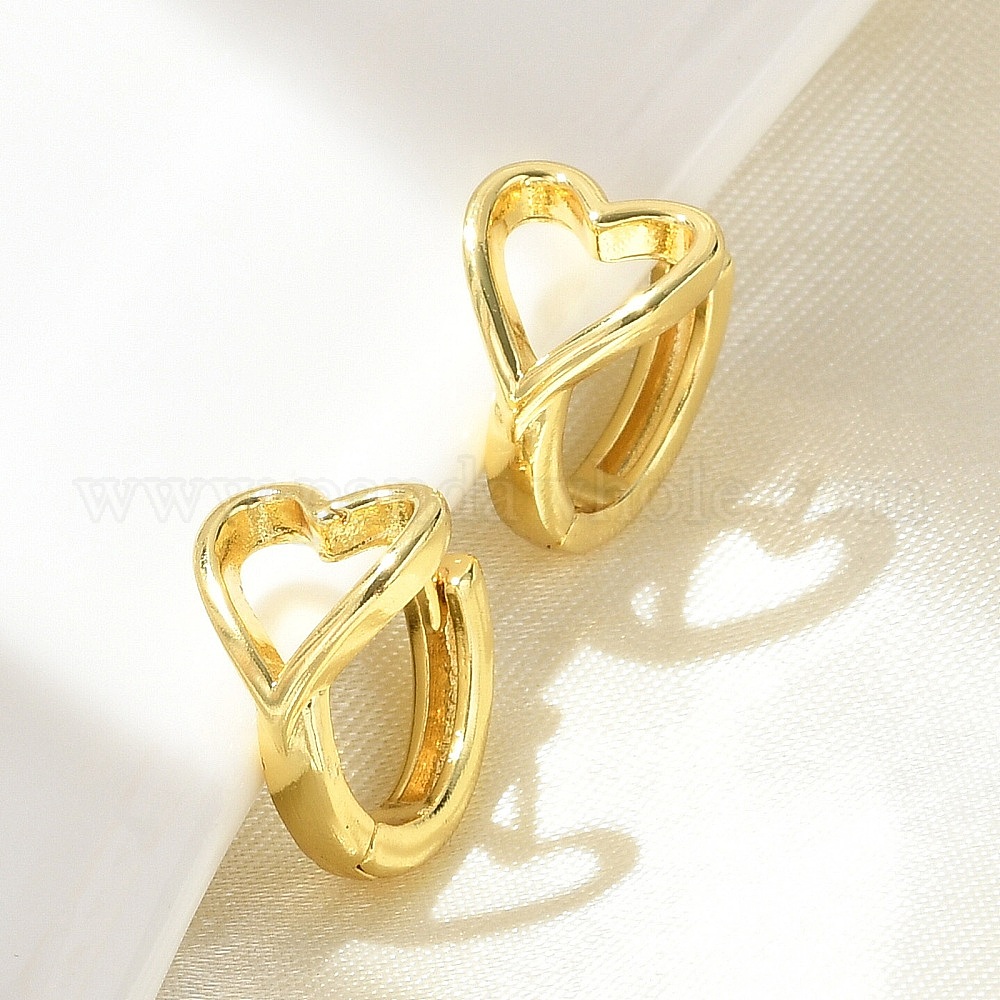 • Настоящее золото 18K Полые латунные серьги-кольца в форме сердца, без свинца и без кадмия, долговечный, реальный 18 k позолоченный, 13x14x9 мм