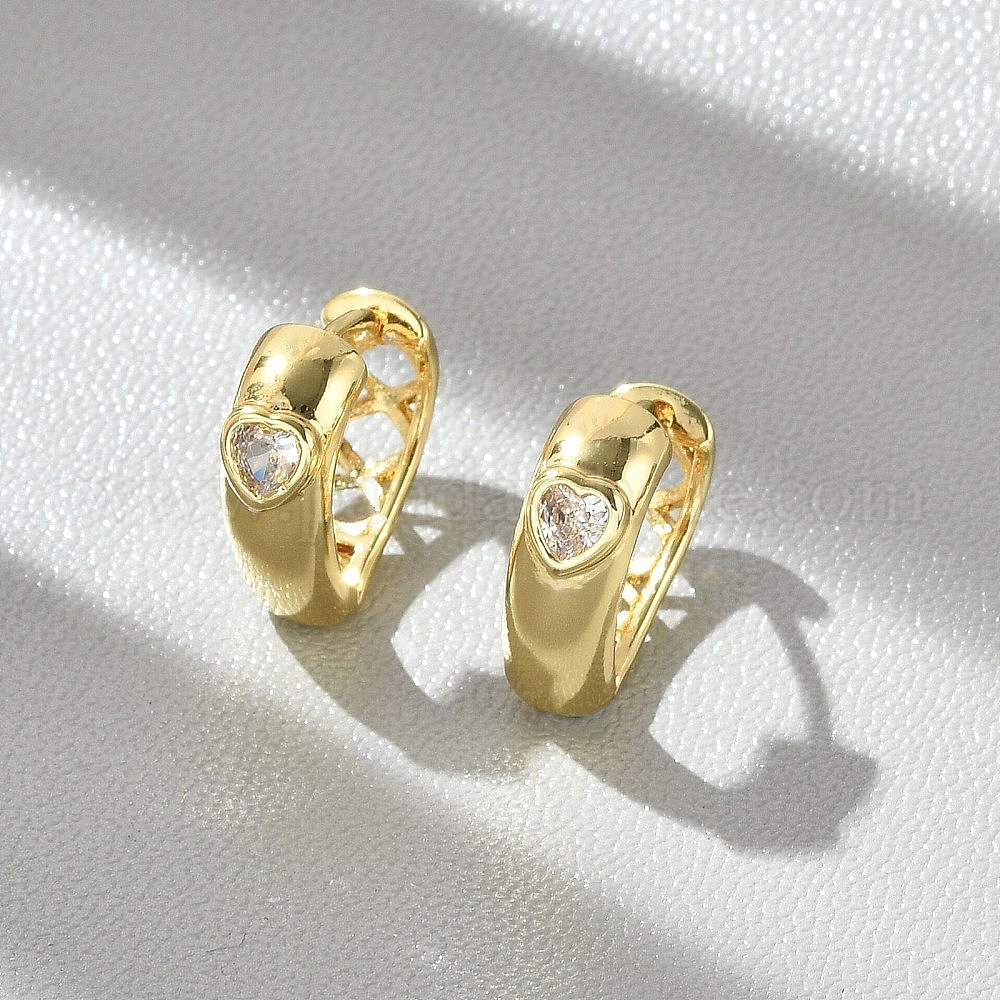 Серьги-кольца из латуни с микропаве и прозрачным кубическим цирконием в форме сердца, без свинца и без кадмия, долговечный