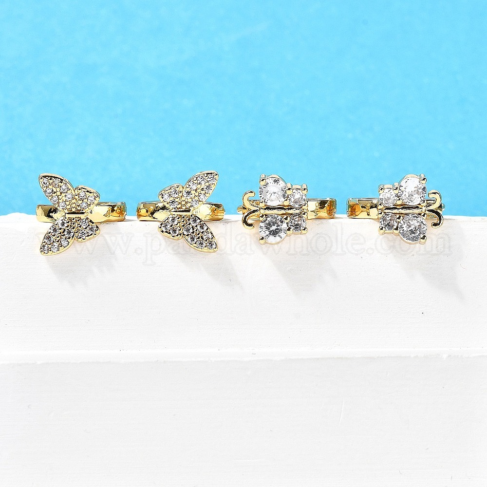 • Настоящее золото 18K Серьги-кольца из латуни в форме бабочки, с четким кубического циркония, реальный 18 k позолоченный, 12.5x11.5x14 мм