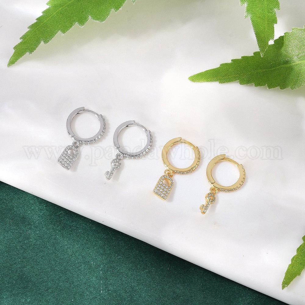 Замок и ключ 925 серьги-кольца из стерлингового серебра с микропаве из прозрачных кубических цирконий для женщин, слева и справа