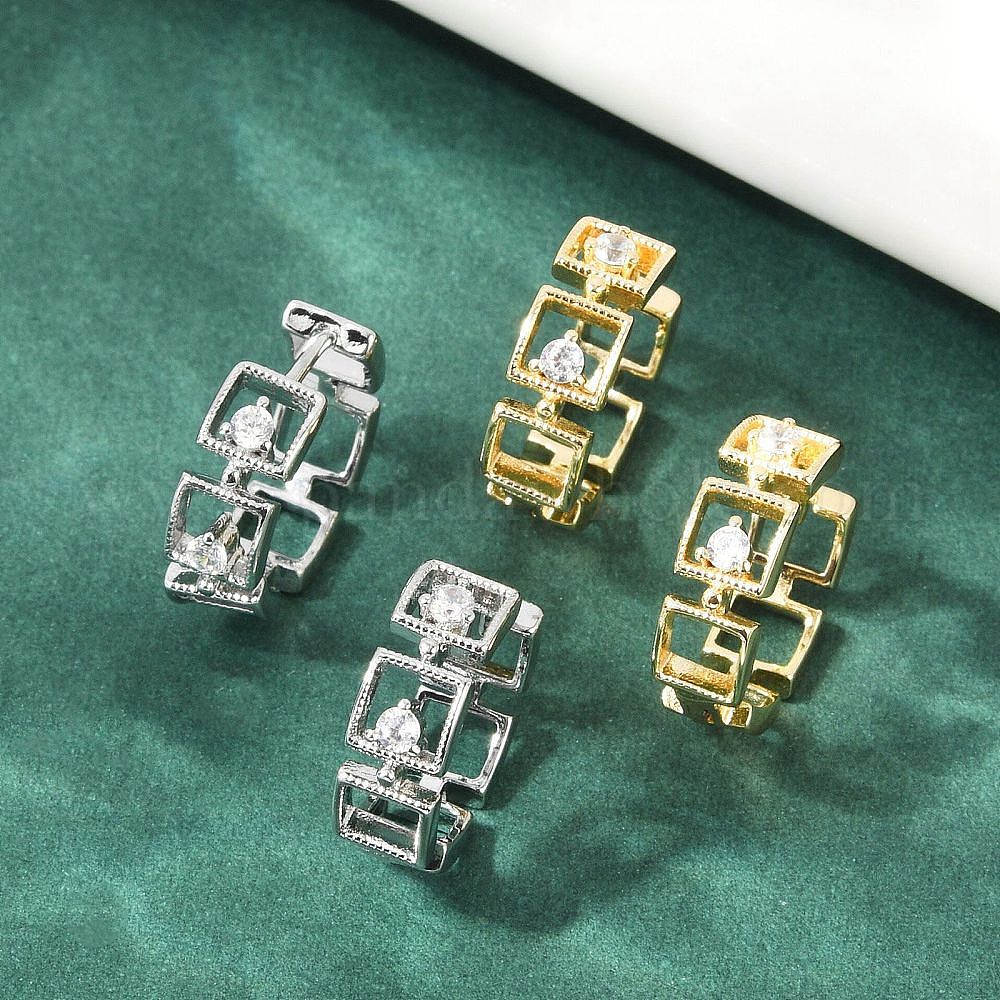 Серьги-кольца из латуни с прозрачным кубическим цирконием, квадратный