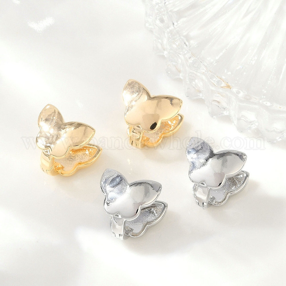 • Платина Латунные серьги обруча, бабочка, платина, 9.5x10.5x10.5 мм