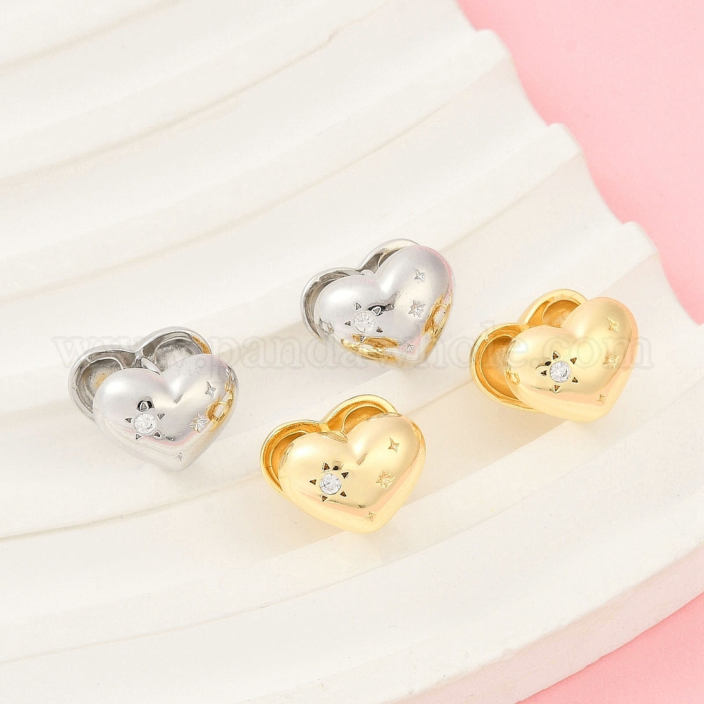 Серьги-кольца из латуни с прозрачным кубическим цирконием, сердце
