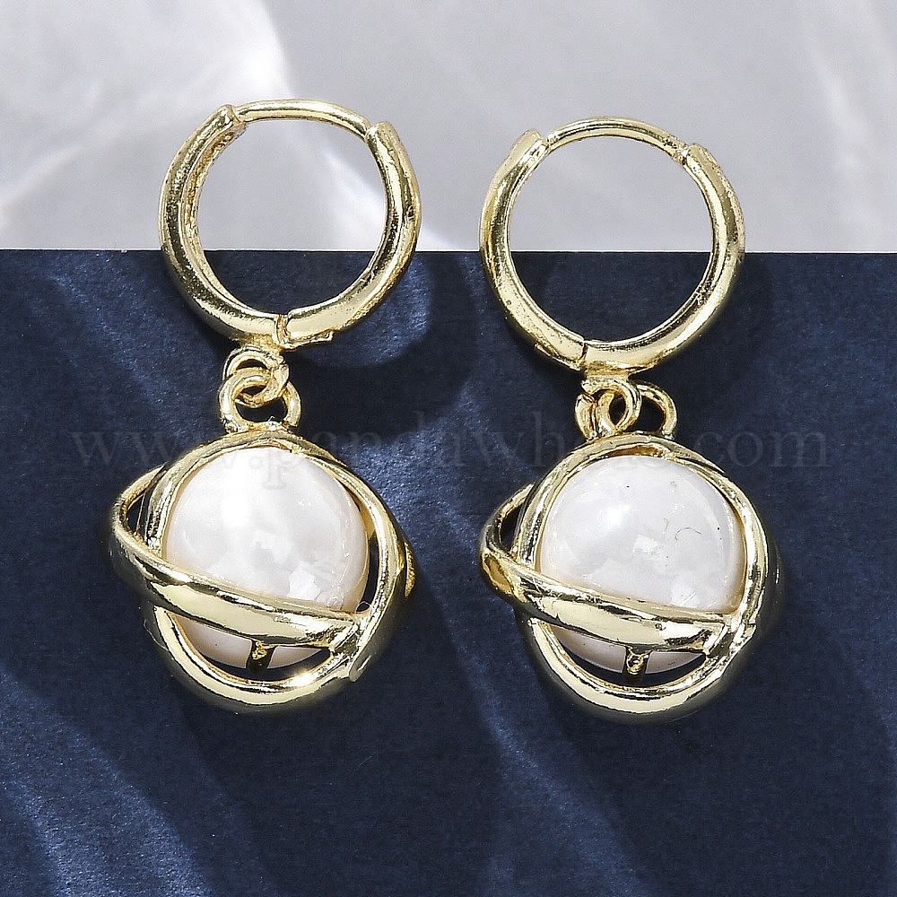 Латунные серьги обруча, с ABS имитации жемчуга, стойки покрытие, долговечный, без свинца и без кадмия, круглые