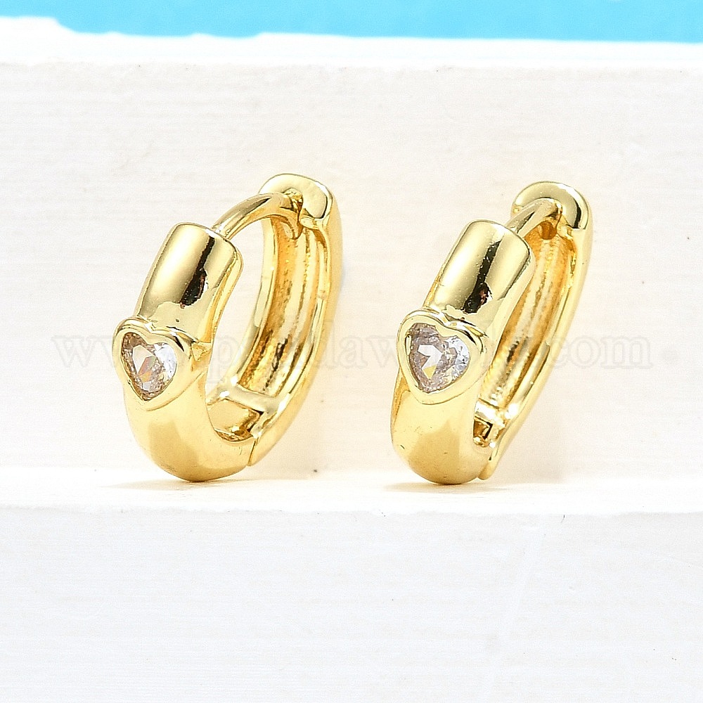 Латунные серьги-кольца из прозрачного кубического циркония, долговечный, без свинца и без кадмия, сердце
