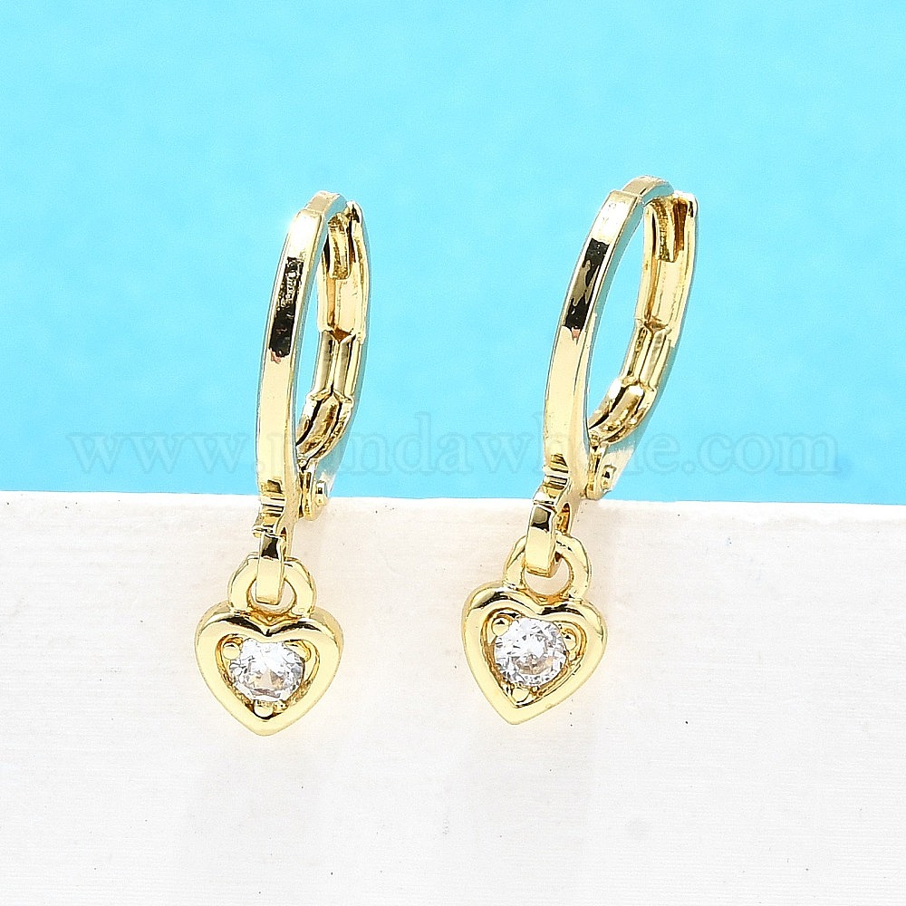 Латунные серьги-кольца из прозрачного кубического циркония, долговечный, без свинца и без кадмия, сердце (032JHQ)