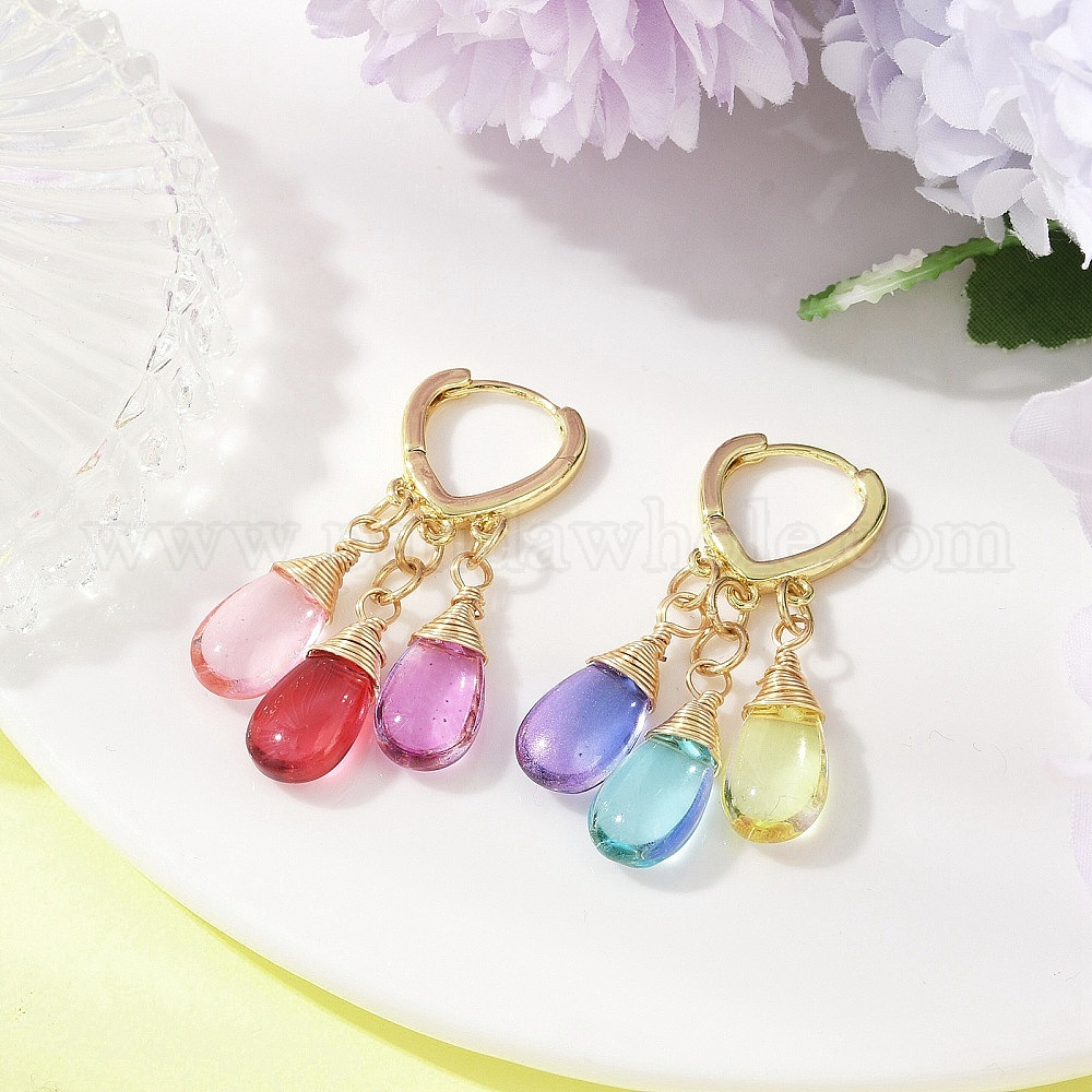 Серьги-кольца с градиентным цветом, прозрачные стеклянные, с запекаемой краской, с латунной фурнитурой для сережек-колец Huggie Hoop для женщин, слезинка