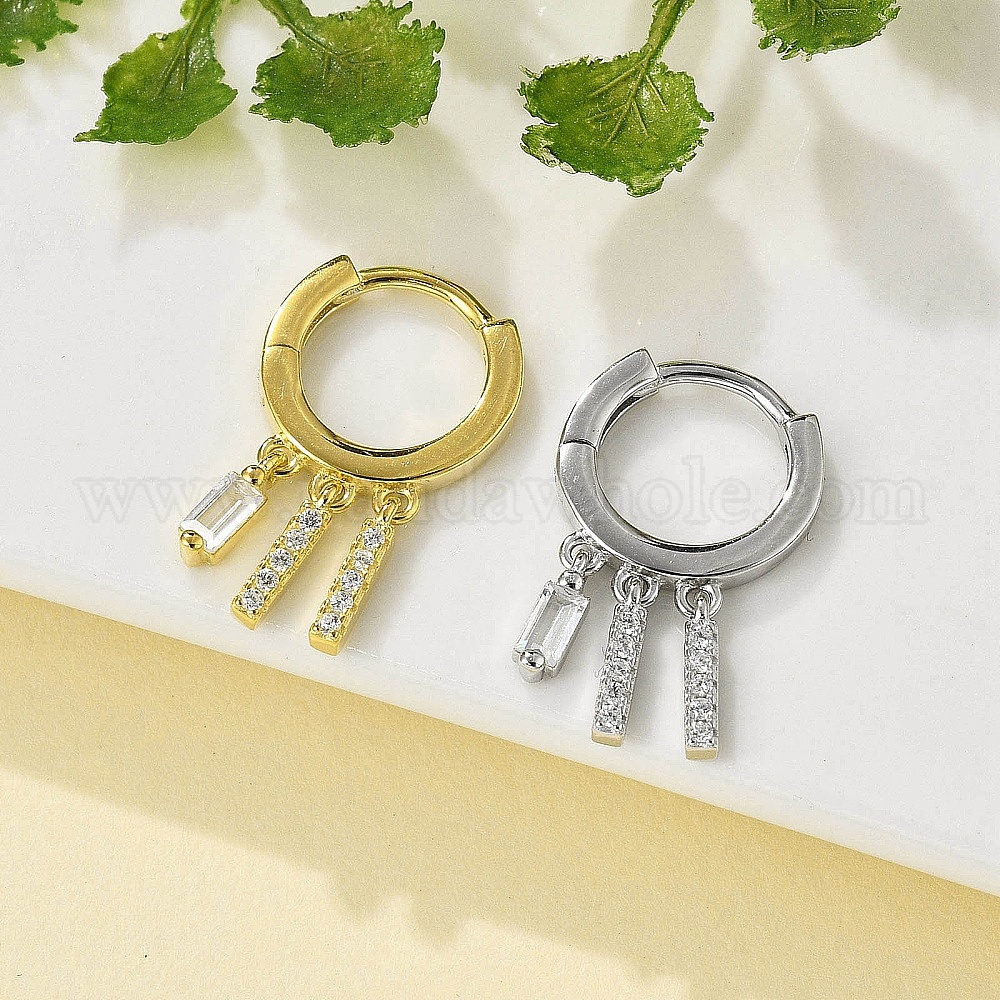 Прямоугольные серьги-кольца из стерлингового серебра с микропаве из прозрачных кубических цирконий для женщин