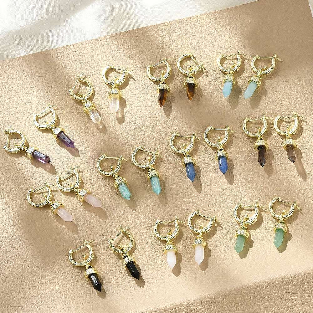 Серьги-кольца природных драгоценных камней, с ионным покрытием (IP) латунные выводы, шестиугольная пирамида (0336KA)