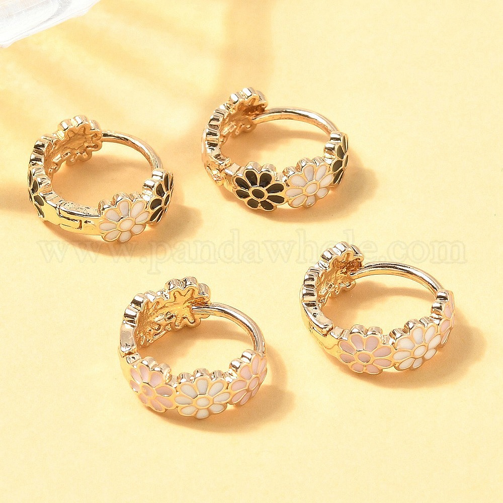 Серьги-кольца из латуни с эмалью в виде маргаритки для женщин, золотые