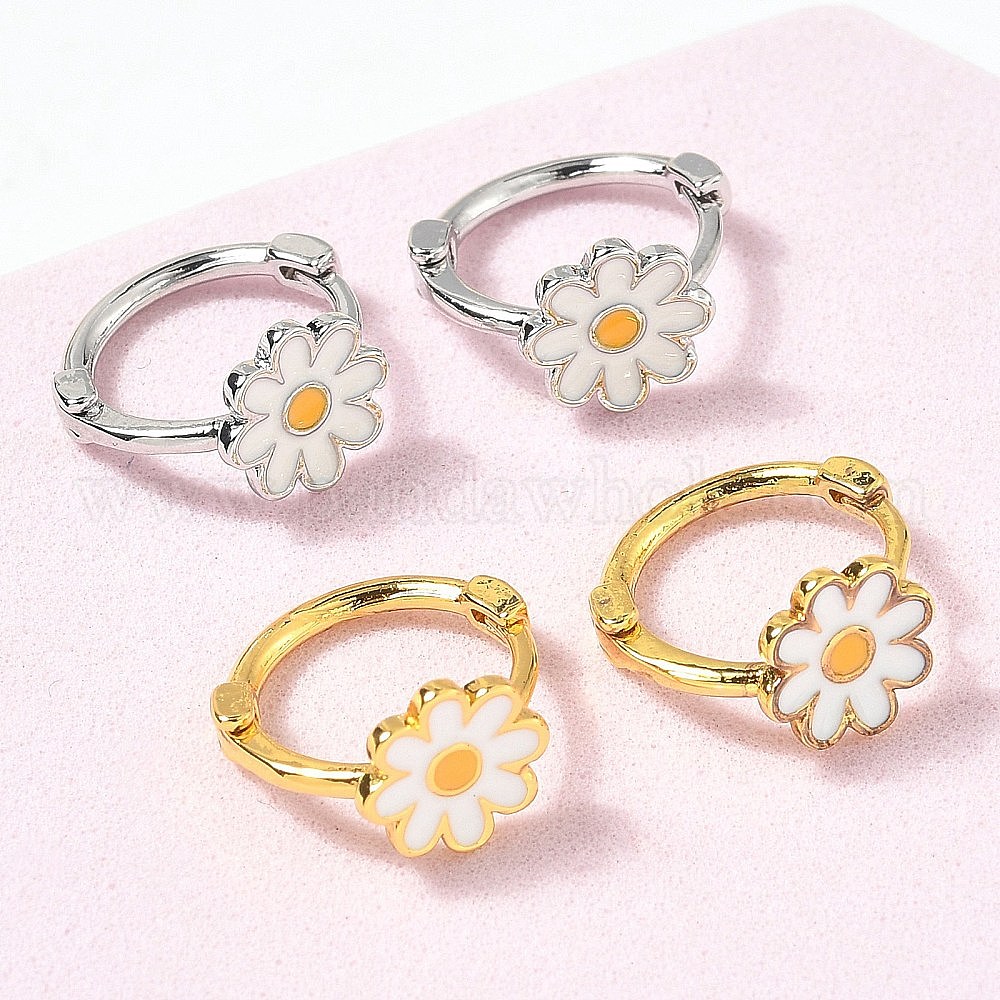 Серьги-кольца из латуни с эмалью в виде маргаритки для женщин