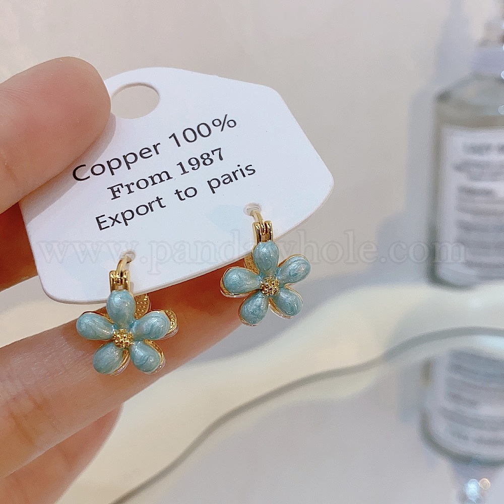 • Настоящее золото 14K Серьги-кольца с цветочной эмалью из латуни, cmолой, реальный 14 k позолоченный, 17x13x15 мм