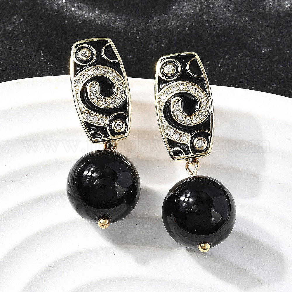 Круглые серьги-кольца из латуни с микропаве из прозрачных кубических цирконий, с эмалью, без свинца и без кадмия, стойки покрытие, долговечный