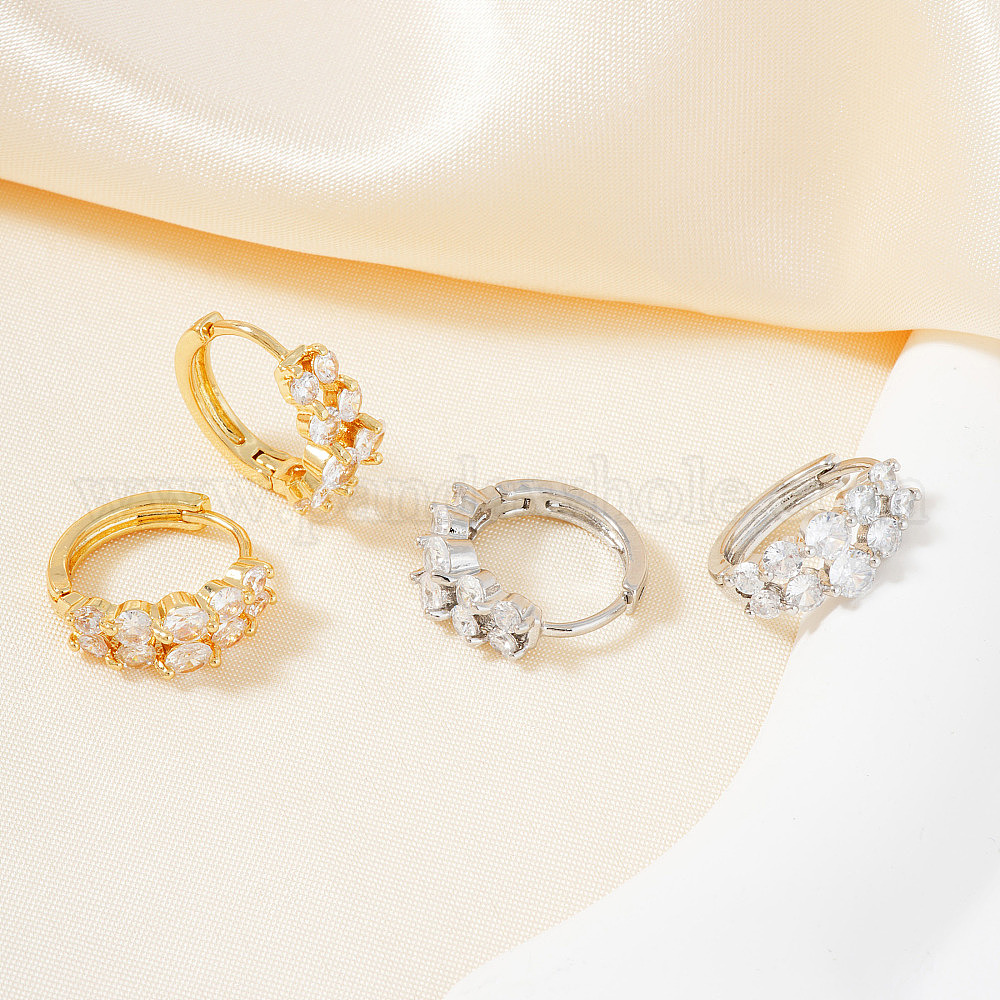 Латунные плоские круглые серьги-кольца с прозрачным кубическим цирконием