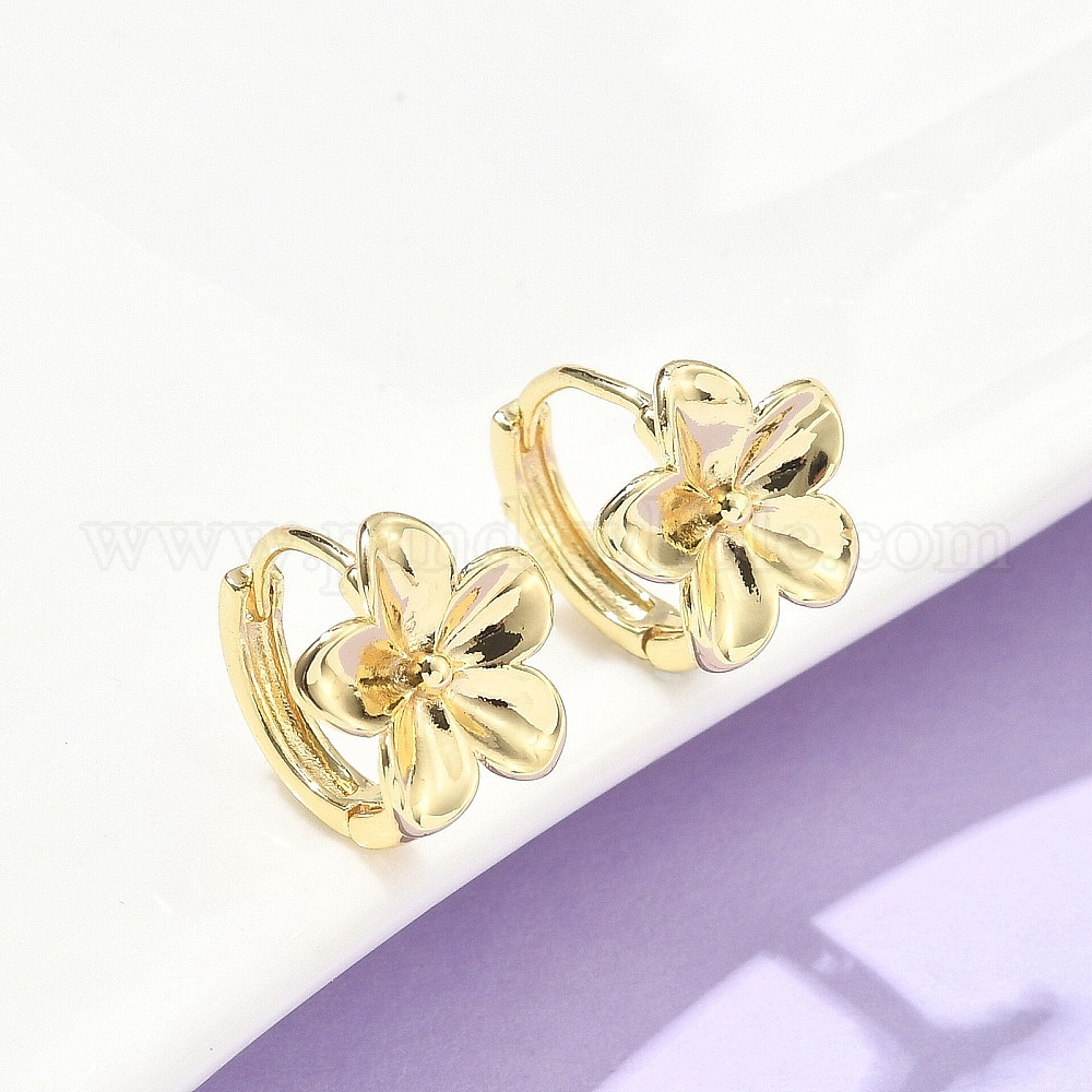 Серьги-кольца из латуни с цветком, стойки покрытие, без свинца и без кадмия, долговечный