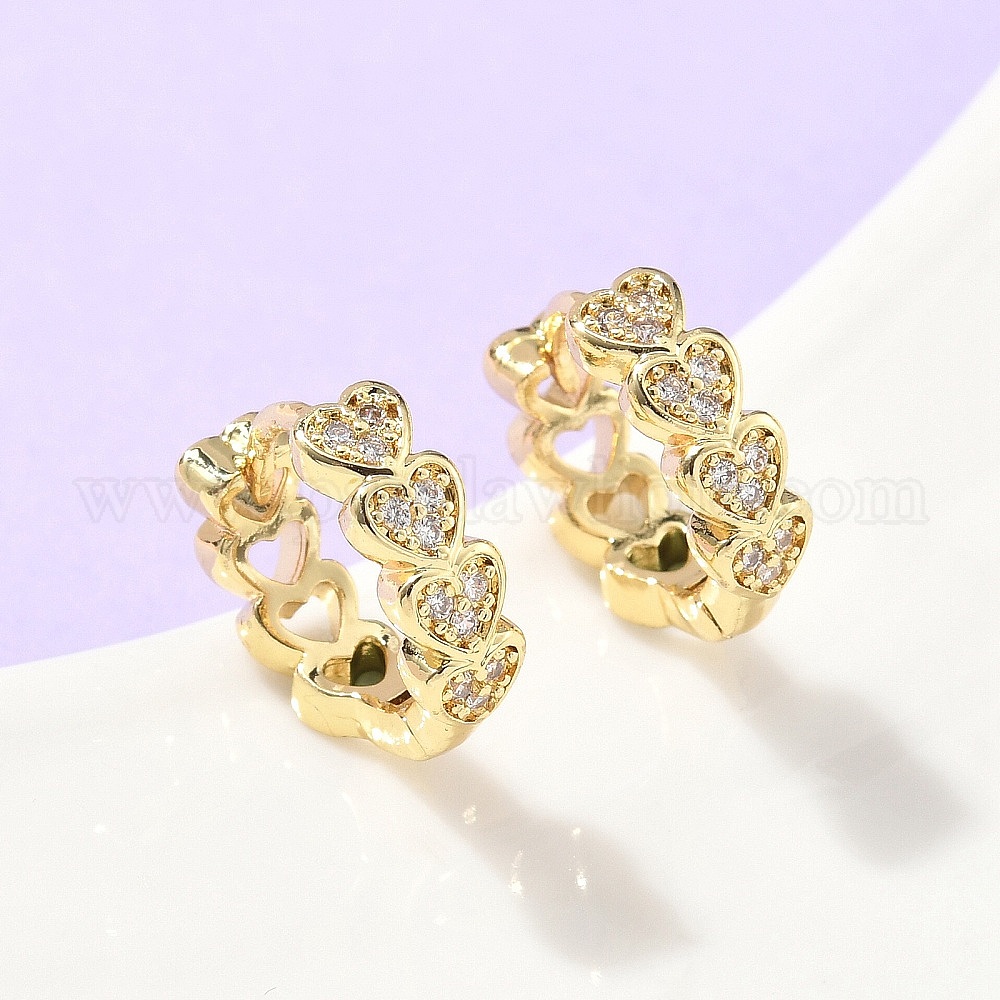 Серьги-кольца из латуни с микропаве и прозрачным кубическим цирконием в форме сердца, стойки покрытие, долговечный, без кадмия и без свинца