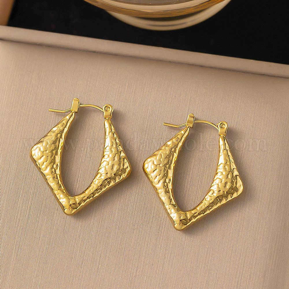 • Золотой 304 серьги-кольца из нержавеющей стали с ромбами, золотые, 29.5x4x25.5 мм