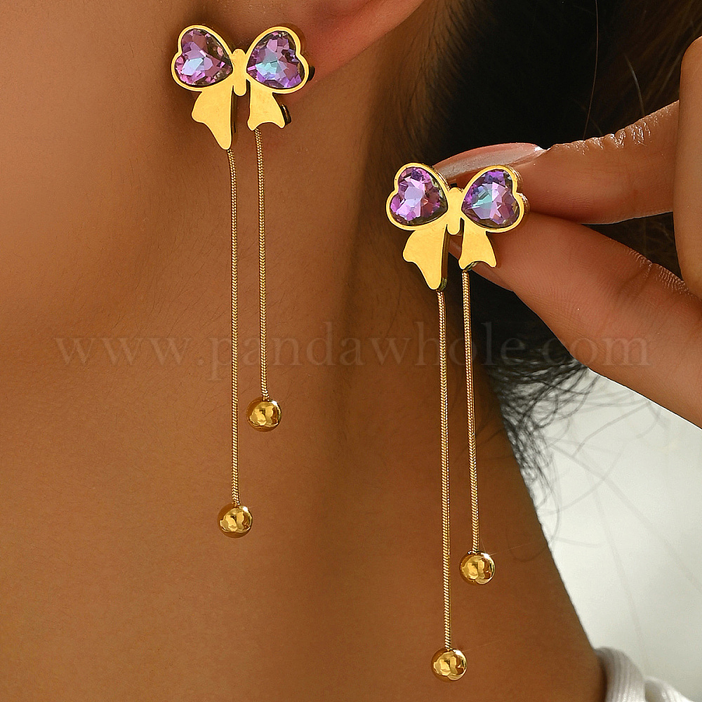 Модные 201 серьги-кольца из нержавеющей стали с бантом, со стеклом
